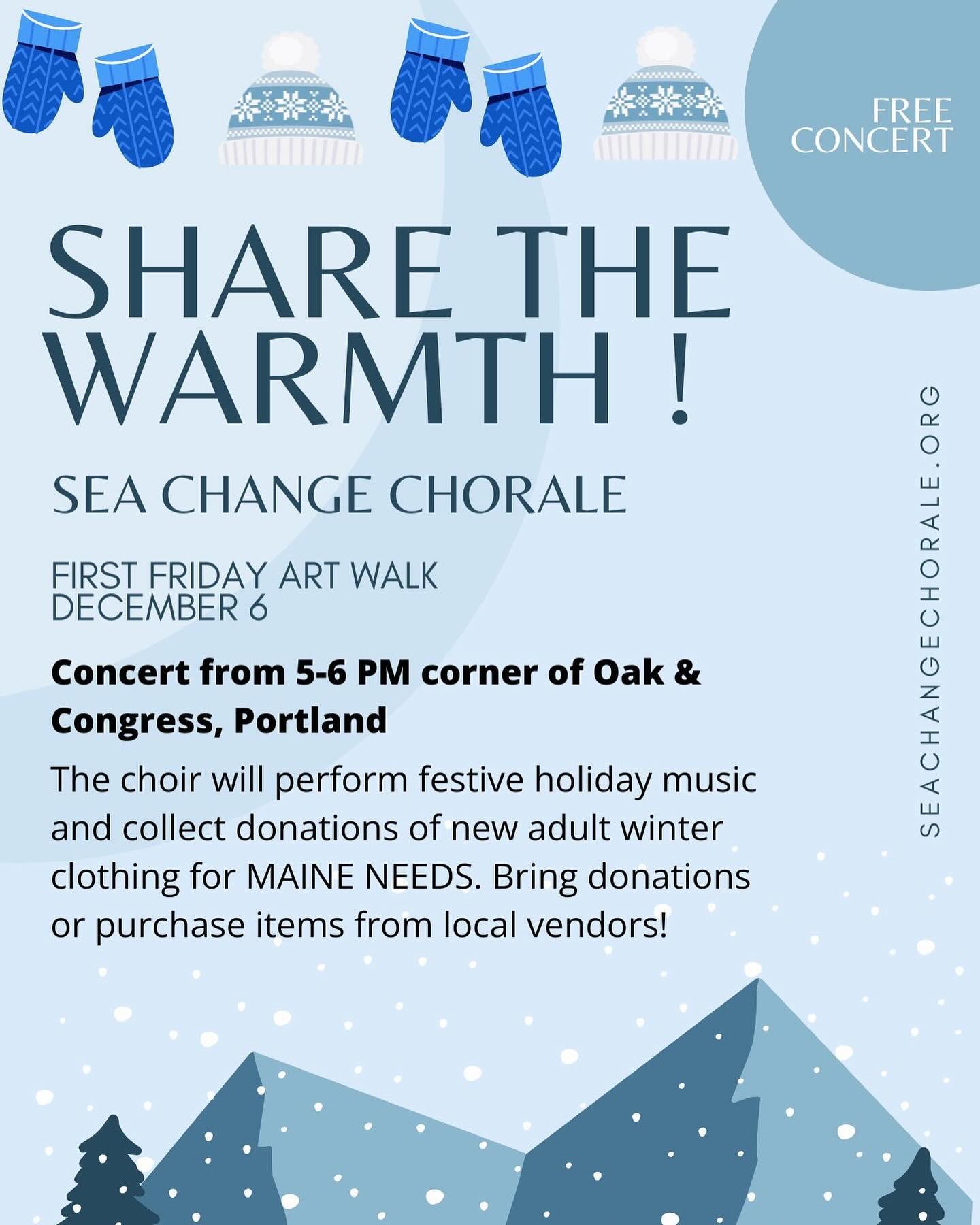 Sea Change Chorale of Portland, Maine is a 501(c)(3) nonprofit group dedicated to spreading awareness of social justice issues and inspiring positive changes in Maine. We work to support our community through partnerships, musical performances, and direct social action. Our Benefit Concerts uplift the work of social justice organizations and raise money and awareness of human needs in our community. All concert proceeds go directly to our social justice partners.
